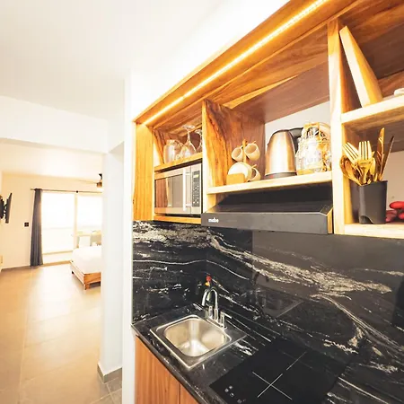 Oprócz minibaru, do dyspozycji Gości jest również aneks kuchenny z własnym wyżywieniem, w tym kuchenką mikrofalową, czajnikami elektrycznymi i przyborami kuchennymi. Najbliższe lotnisko, Isla Mujeres, znajduje się w odległości 0,9 km. W Apartament Sirenas Studio na balkonie znajdują się stół obiadowy.